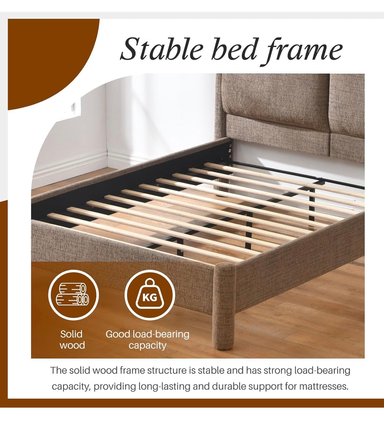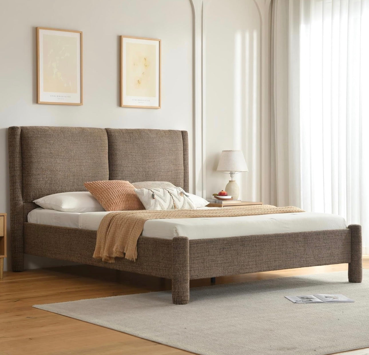 Lámpara moderna tapizada en tela de poliéster en tono café, tamaño Queen.